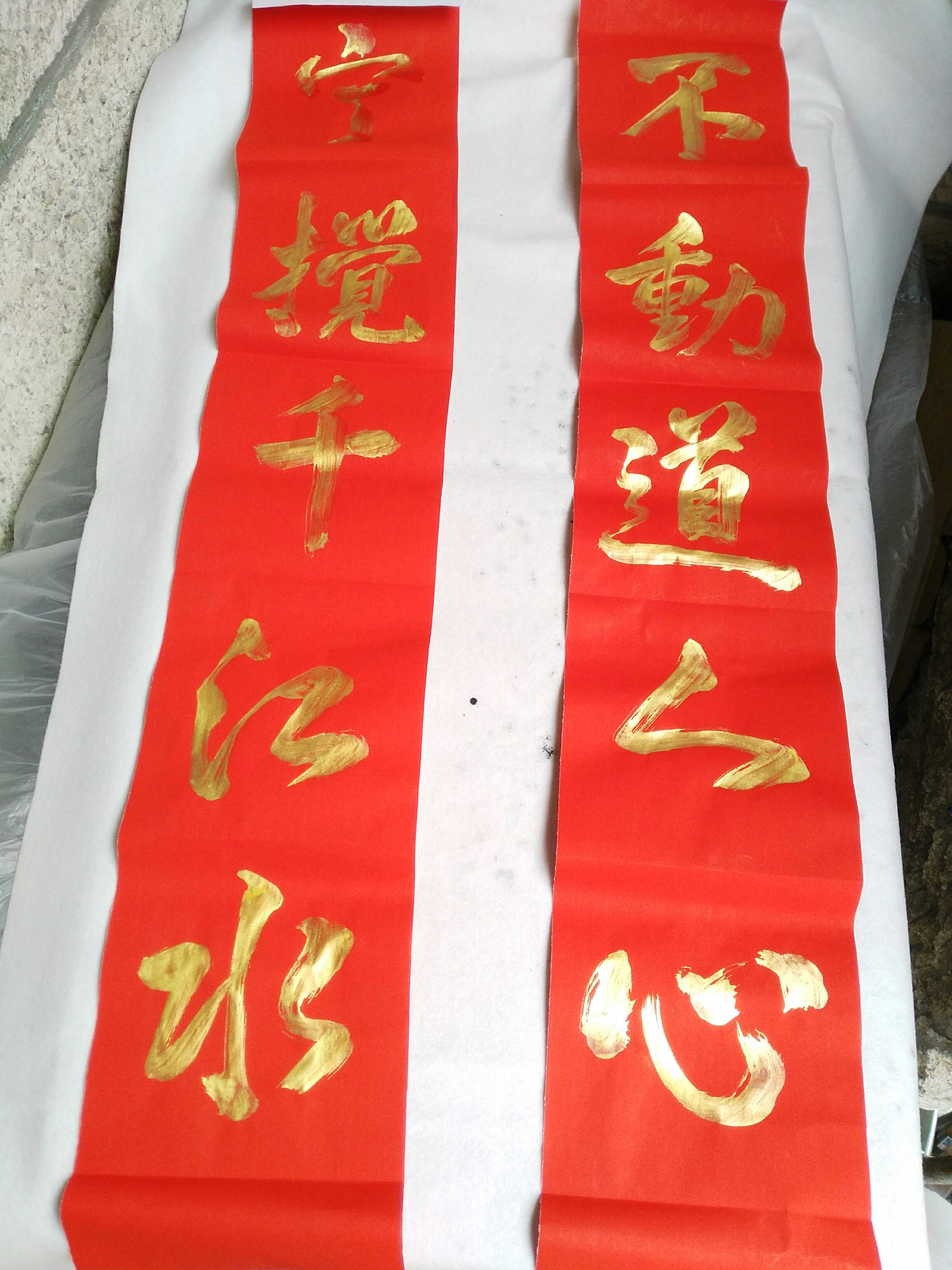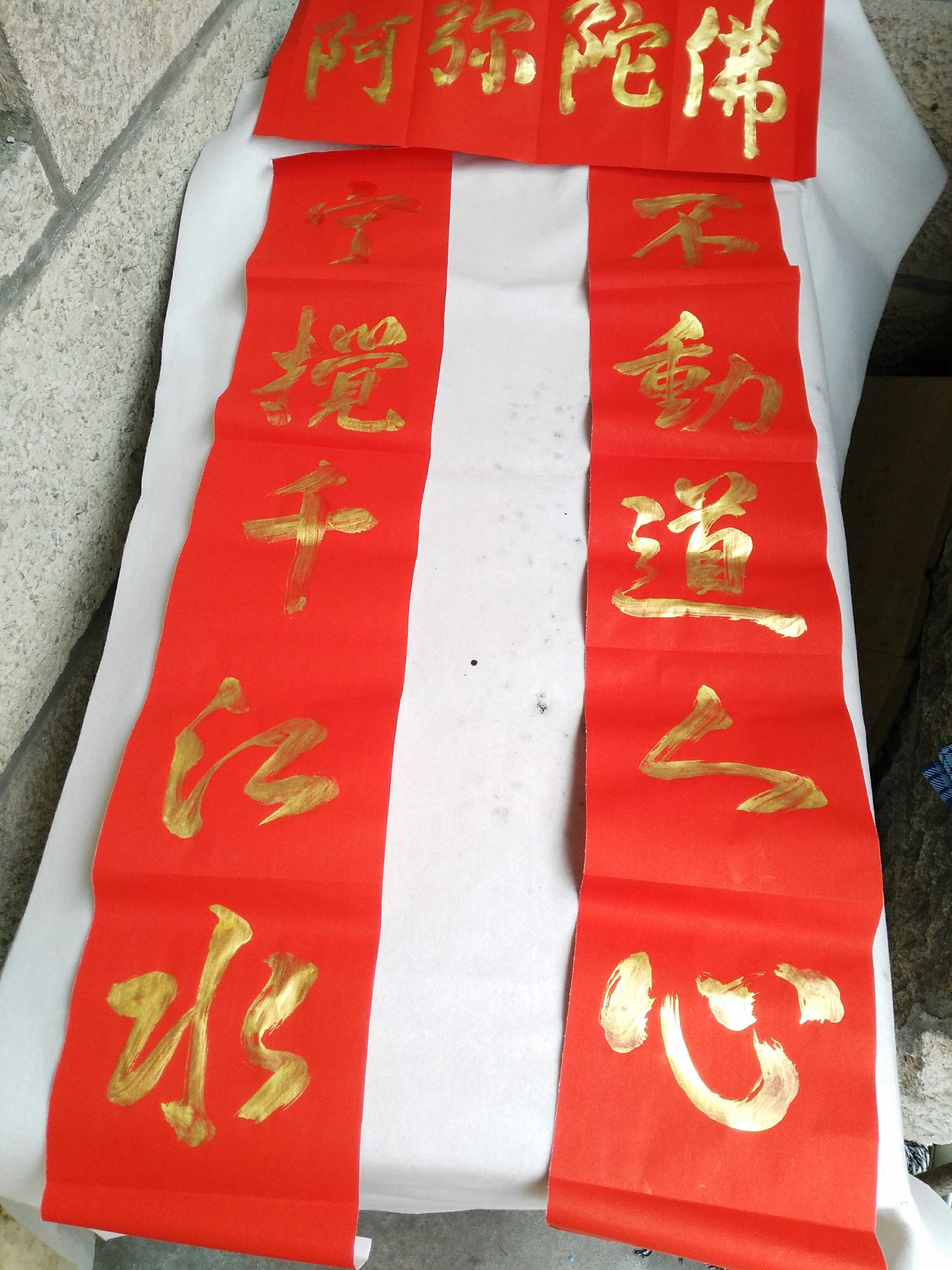 Handwritten couplets for temple Buddhist temple Buddhist temples with dedicated Buddha to the Wuyunshan people's calligraphy and calligraphy red paper yellow paper
