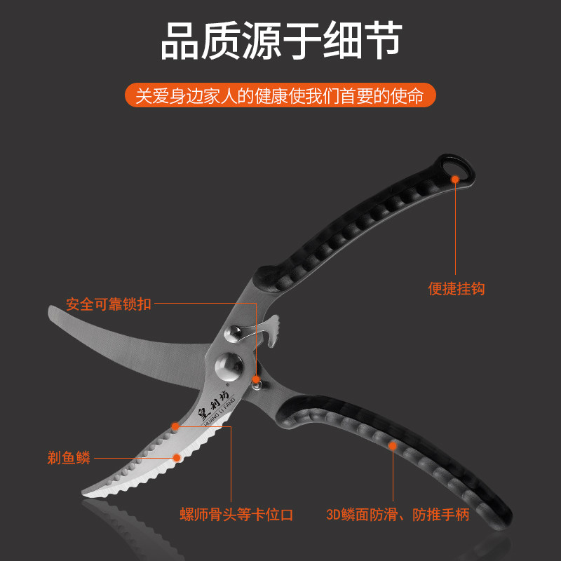 Yangjiang kitchen scissors strong chicken bone scissors Stainless steel family dual-use kitchen scissors meat and vegetable scissors automatic rebound