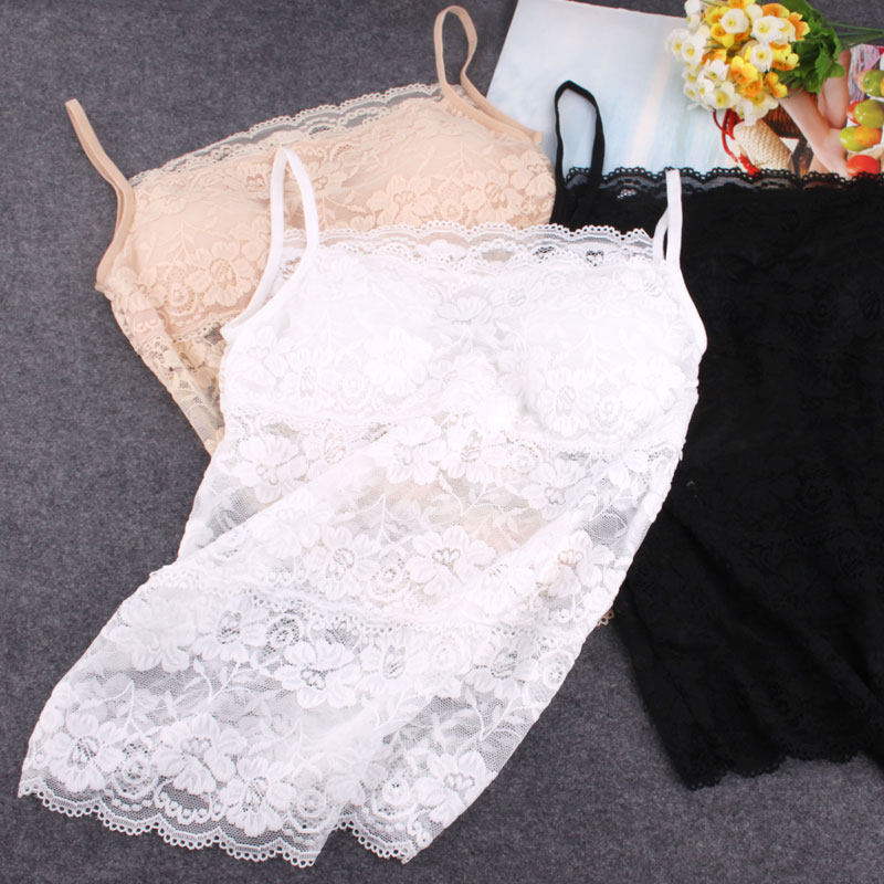 Spring Summer 100 lap lace with chest cushion Chest Cushion Wrap Chest of Walking Light Sexy Beating Underpants Vest Long version of women's underwear