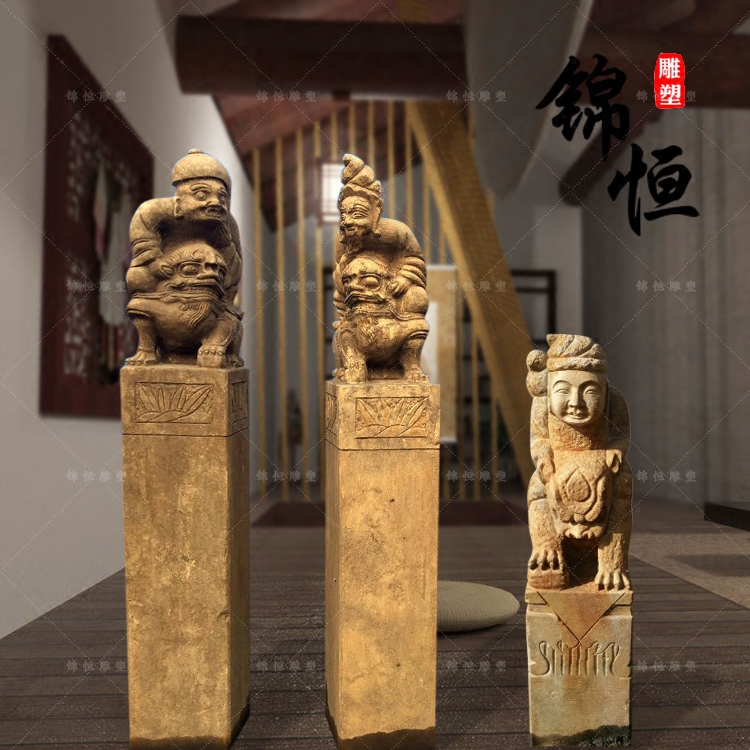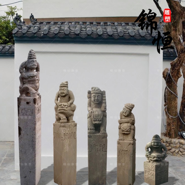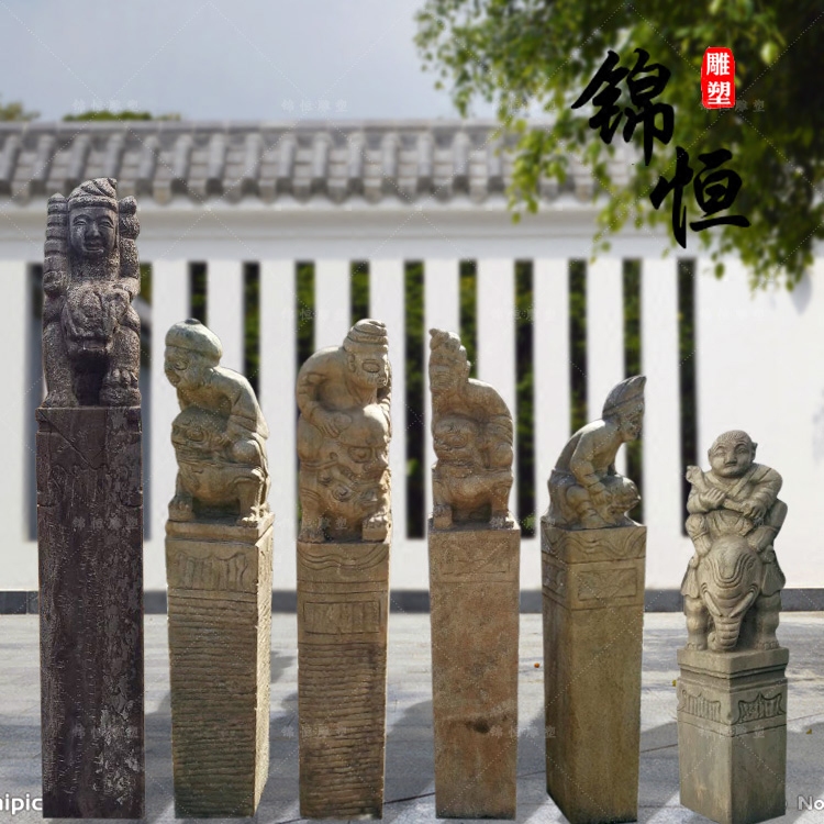 Stone Sculpture Tethered Horse Pile Human Jade Lions Imitation Ancient Made of old Qingshi Courtyard Town Residence Chaeze Pillar Decoration Engraving Pendulum
