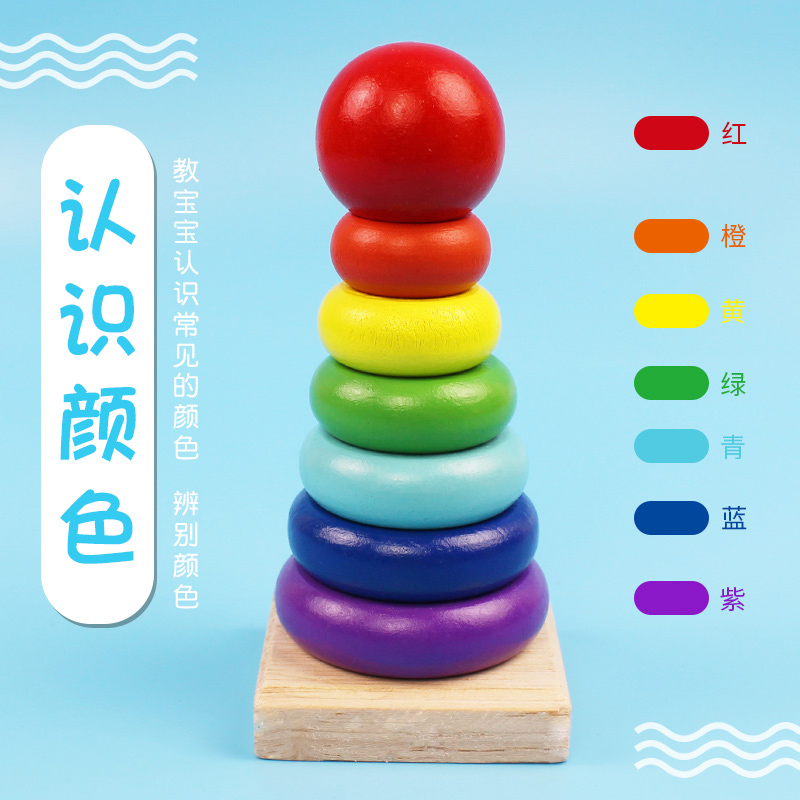 Wooden laminated laminated music baby boy baby early lessons intellect toy stack layers of rainbow cover tower ferrule column-Taobao