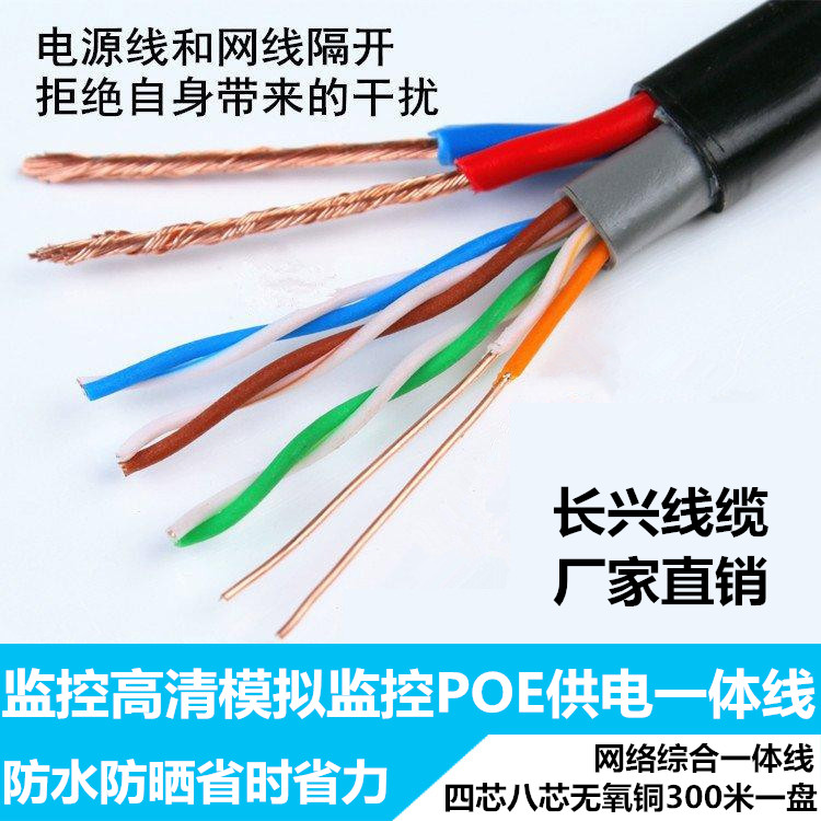 Outdoor network cable with power supply integrated line 4-core 8-core network cable Power supply composite line Network monitoring integrated line 300 meters