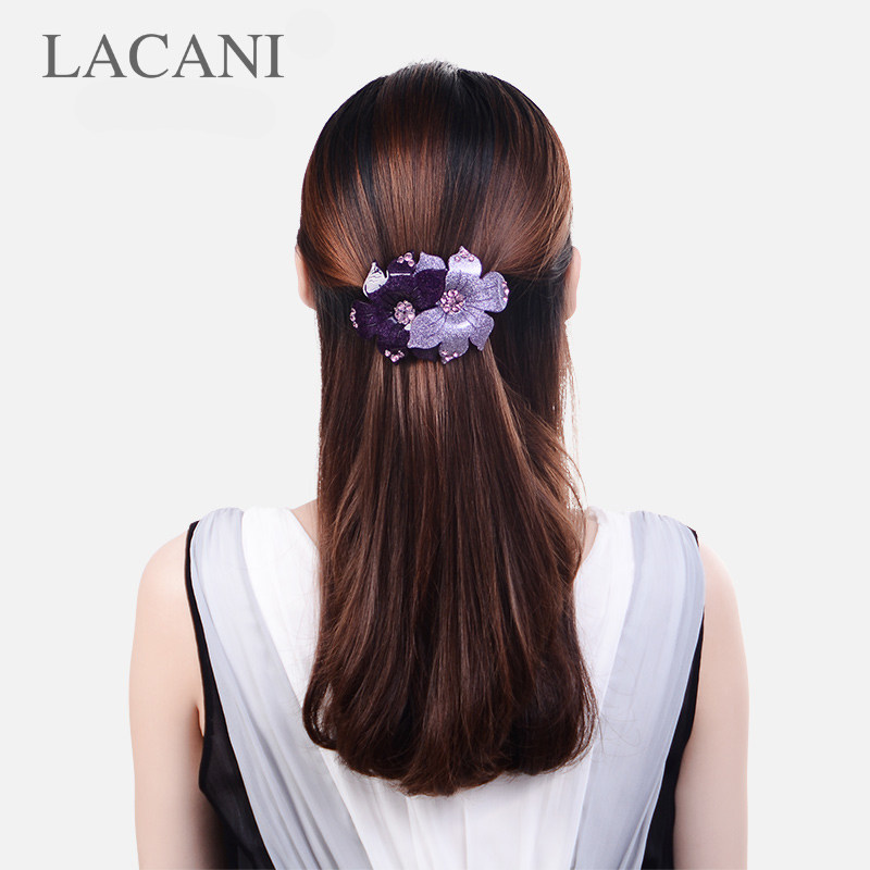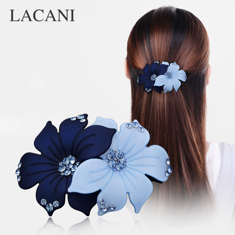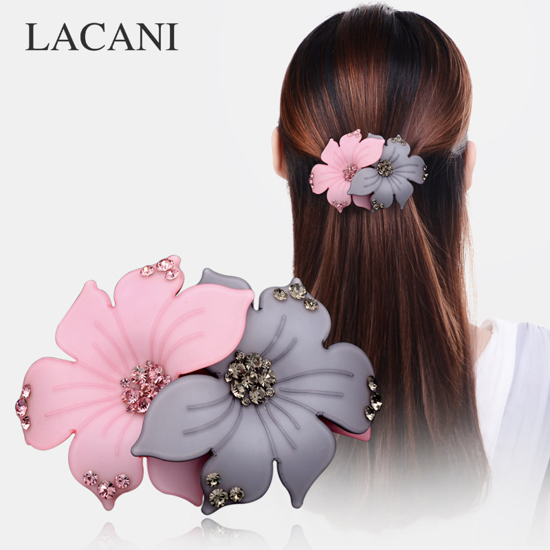 Hair Clip Rear Brain Spoon Double Flower Top Clip Head Adorned South Korea Half Zhafa Water Drill Large Spring Horsetail Crossclip Hairpin-Taobao
