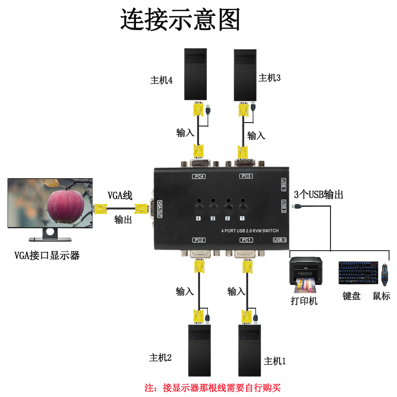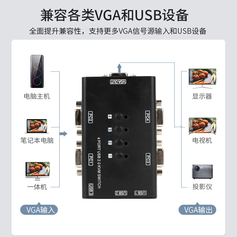 kvm switch 4 port manual USB multicomputer switch 4 in 1 out VGA switch keyboard mouse sharer