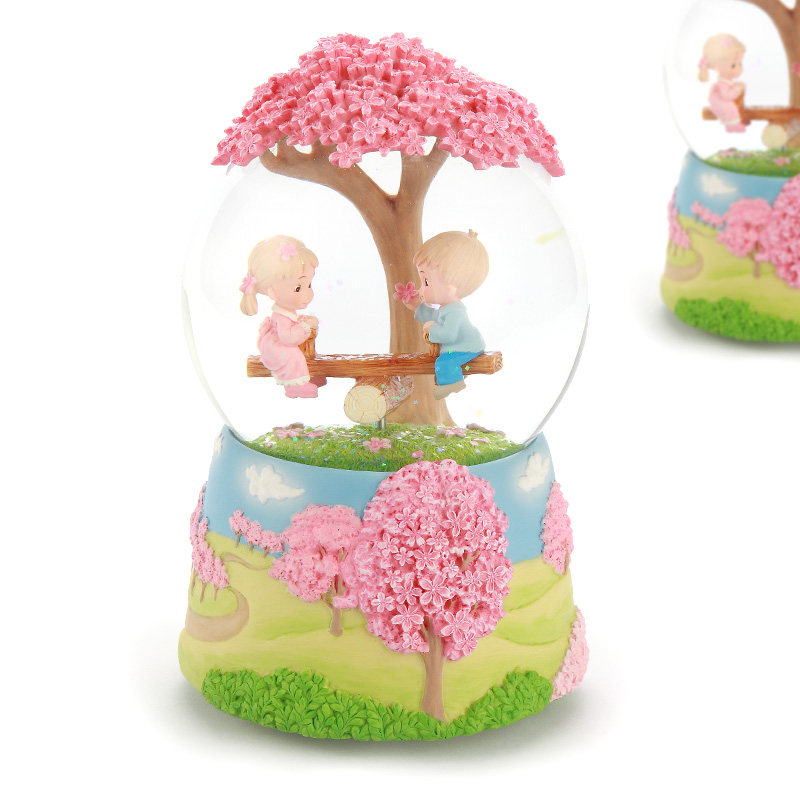 JARLL Crystal ball music box Music box Girls children couple birthday creative gift Cherry blossom love snowflake