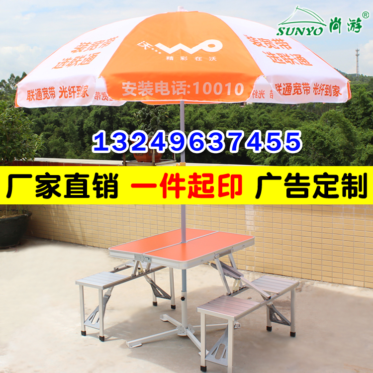 Unicom advertising umbrella (without base) Unicom umbrella + cross iron frame base umbrella split reinforced table and chairs (4 cloth chairs) umbrella base Siamese aluminum alloy table and chair