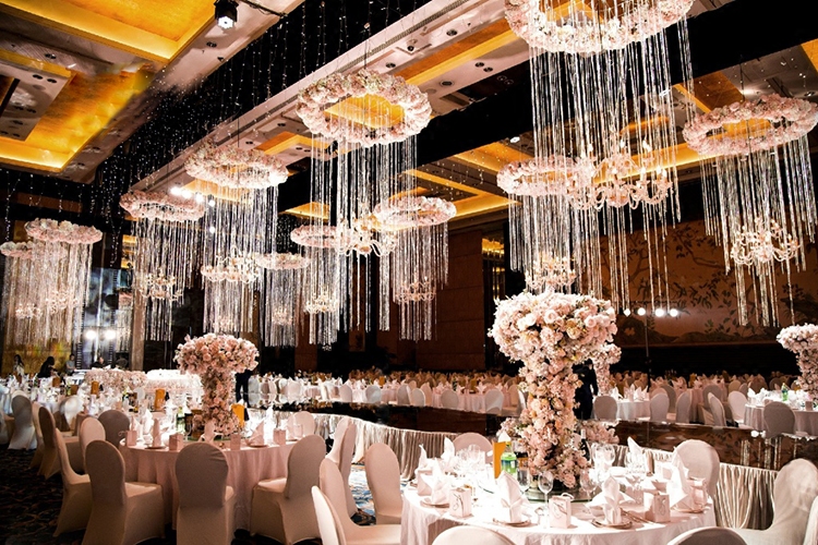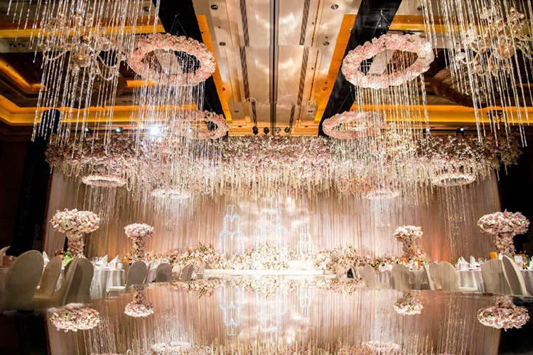 New Wedding Props Suspended Ceiling Ring Beads Curtain Round Floral Rings Iron Art Rings Wire Curtain Wedding Stage Cirque Suspended Ceiling
