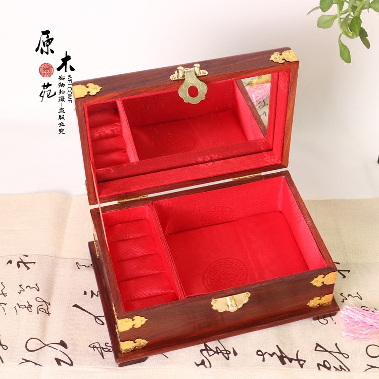 Red Wood Wooden First Decorated Box Solid Wood Wedding Wedding Ornaments Containing Box Princess's first decorated case antique small first decorated case jewellery box-Taobao