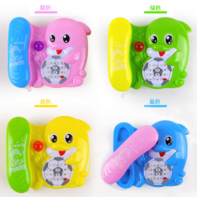 3-year-old Child Puzzle Toy Telephone Cartoon Dolphins with Music Luminous Phone Con Thermal Pin Electric Toys