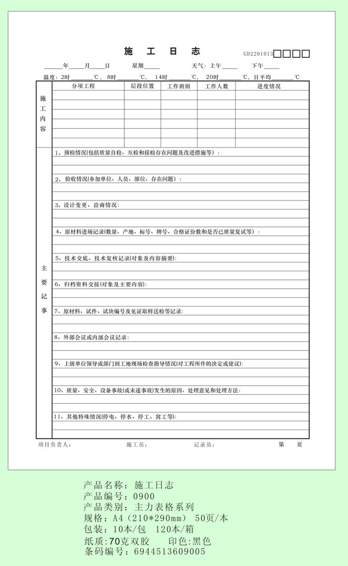 Main A4 construction logbook 900 construction diary Unit record Construction engineering enterprise logbook