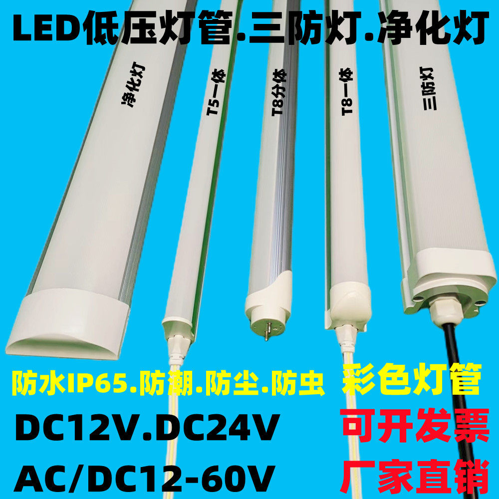 T5 One low pressure lamp tube T8 machine tool cold storage tunnel DC24V three anti - purification lamp DC12V outdoor waterproof