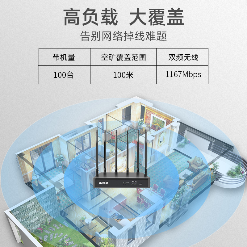 Flying fish star VW1200 enterprise router Gigabit port dual-band 5G multi-WAN port Home commercial wireless WiFi High-power wall king high-speed router