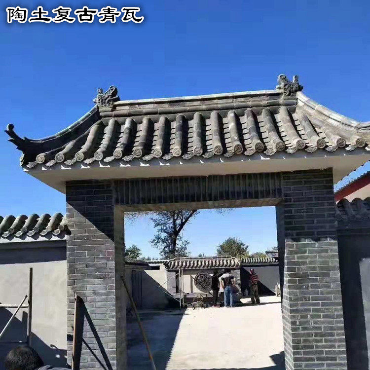 Clay fired Chinese-style Han and Tang gatehouse clear brick indoor retro building horse head wall decoration green gray tile small green tile