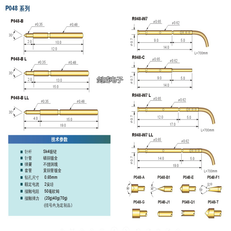 Huarong P048-F1 (small four claws) diameter 0.48 long 12 test probe electronic test needle top needle