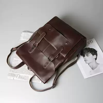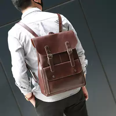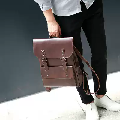 Fashion trend backpack men's Korean travel backpack British retro Crazy Horse leather wild casual student schoolbag