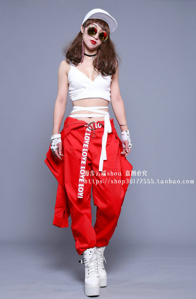 New men's and women's competition costumes square dance HIPHOP red jumpsuit JAZZ street dance performance set