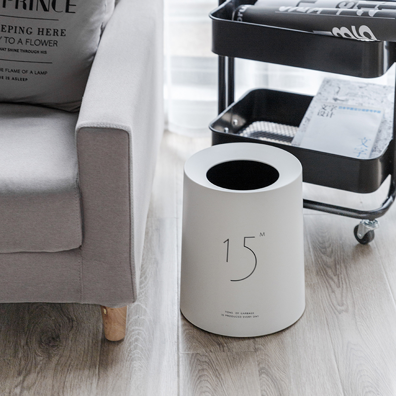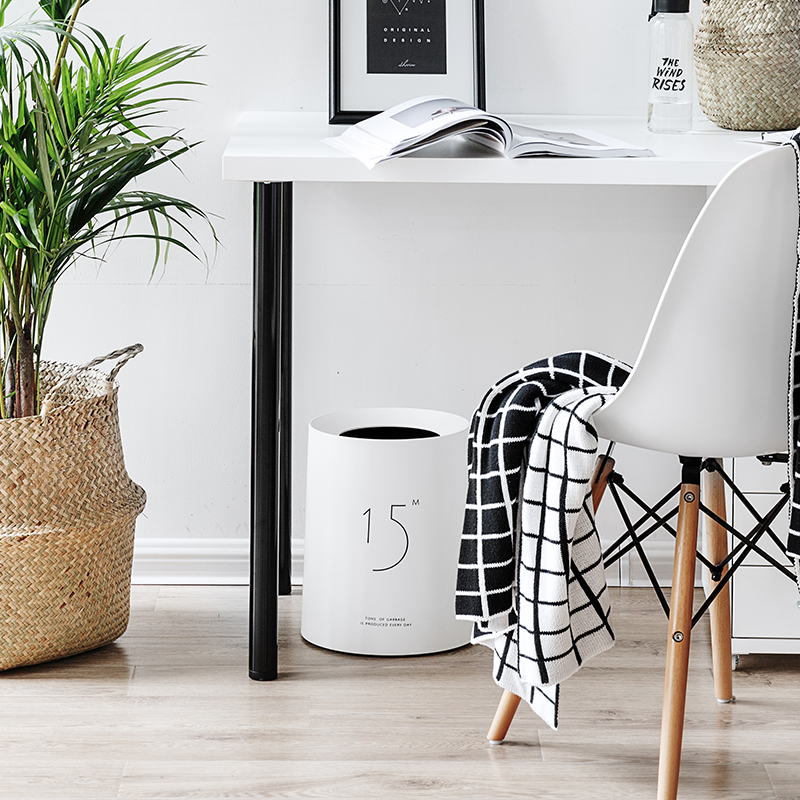 Description Trash trash drum household living room bedroom minimal upscale uncovered toilet creative paper basket Nordic wind and white
