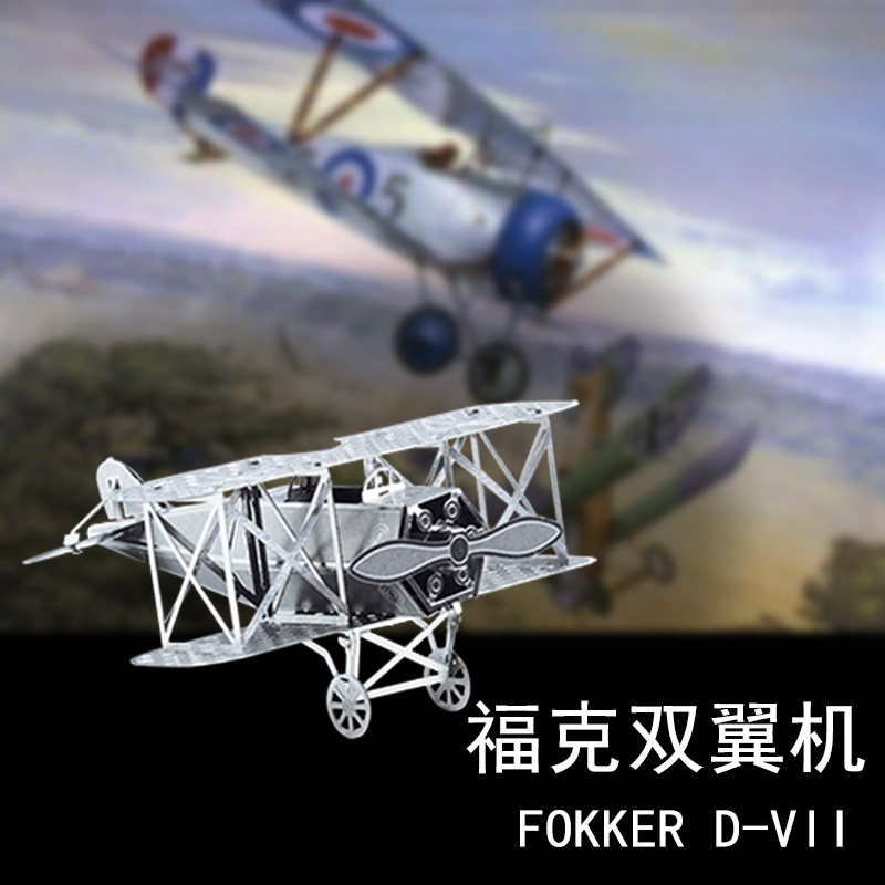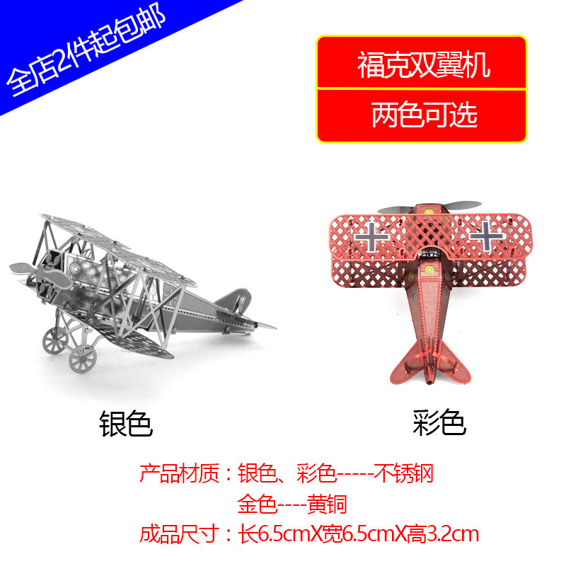 3D Glue-free three-dimensional metal assembled stainless steel puzzle model Airplane bomber Fokker biplane fighter
