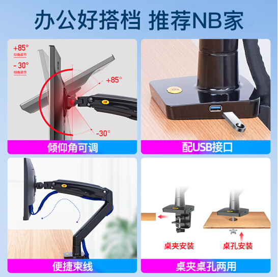 NB F100A computer LCD table top down lifting left and right rotating aluminum alloy frame 22-35 inch