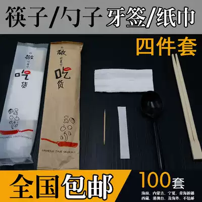 Fully transparent with wonton spoon 4-piece set 100 kraft paper bags with round head spoon Four-piece set 100 toothpicks chopsticks two-piece set 90 pairs