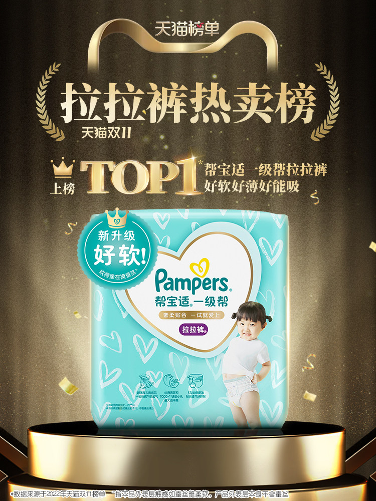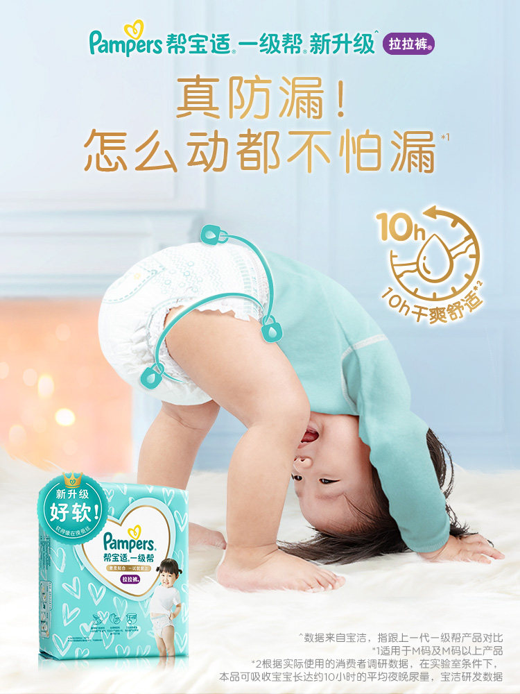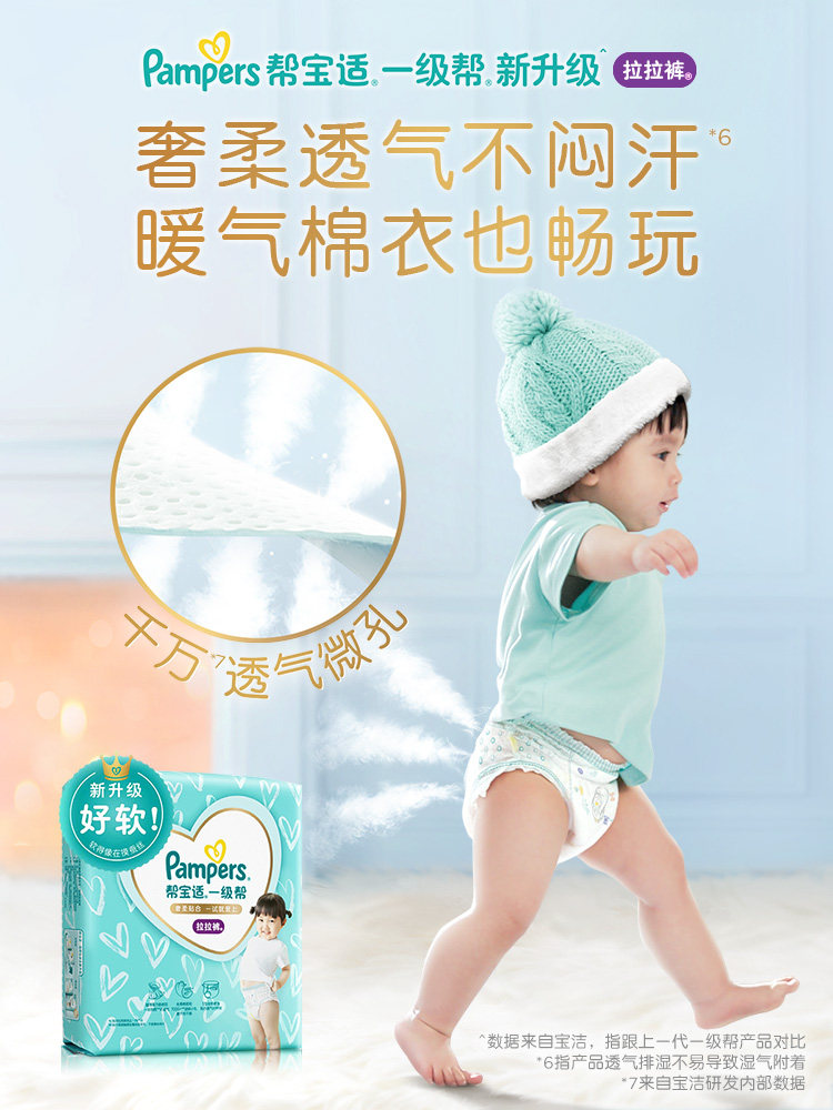 Pampers first-class pull-up pants M L XL XXL male and female baby diapers soft diapers 1 piece with 2 packs