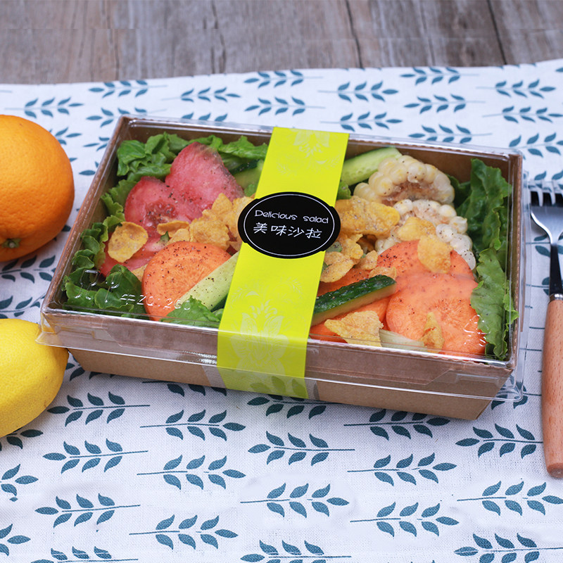 Disposable kraft paper lunch box Large window anti-fog salad packing box Western restaurant sushi bento delivery box Environmental protection