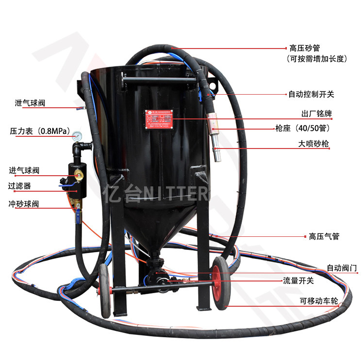 Small mobile sandblasting machine sandblasting rust removal polishing equipment manual high pressure sandblasting tank shot blasting water sandblasting machine