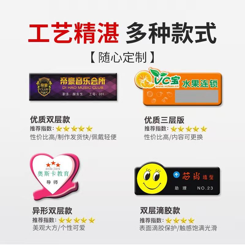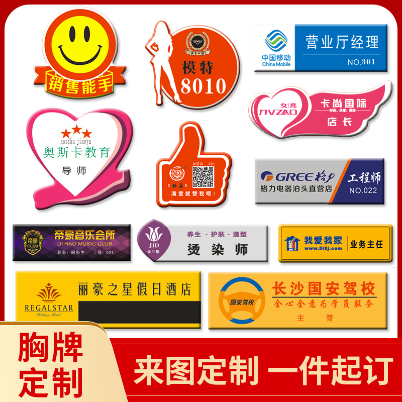 Acrylic badge custom school badge number plate high-grade smiling face staff work badge pin type kindergarten badge