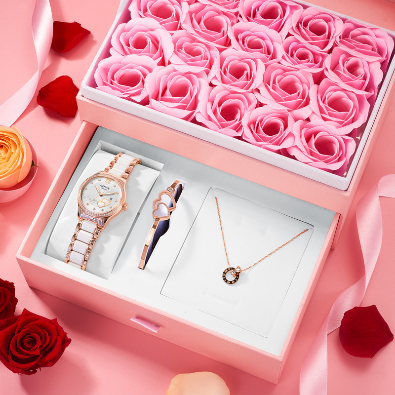 Rose gold drill (send a rose florist box heart to print calendar (send heart-shaped bracelet necklace exclusive-rose gold full drill surface (send a bracelet necklace Meijin inlaid with a life of a baby) (send a bracelet rose gold drill (give a hand)
