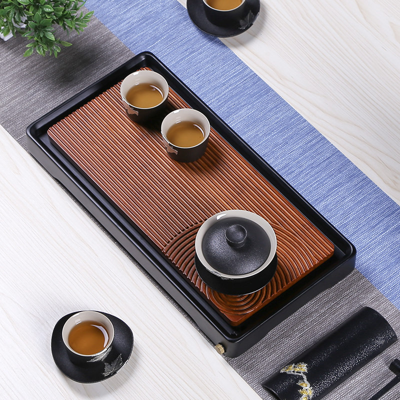 Big porcelain hall heavy bamboo dry landscape tea tray kung fu tea set large tea table dry and wet storage water drainage tea sea