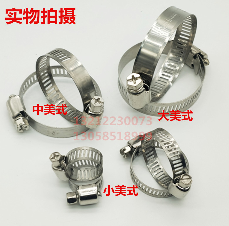Small, medium and large American stainless steel throat hoop ventilation pipe rubber pipe PVC plastic hose clamp hoop clamp throat hoop