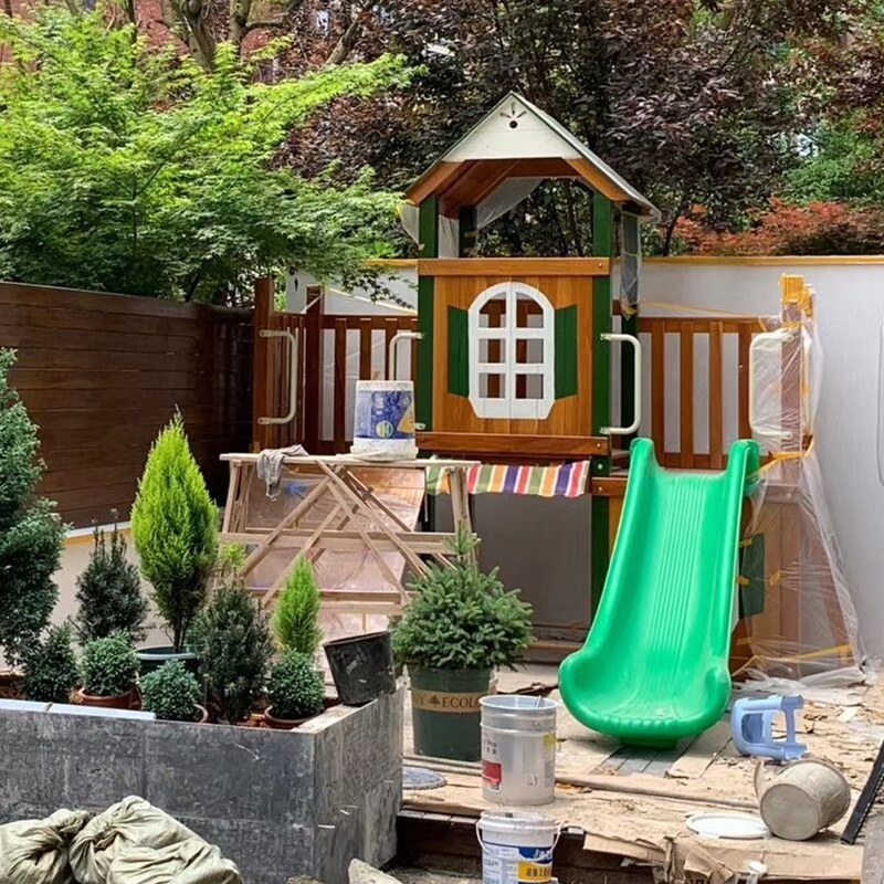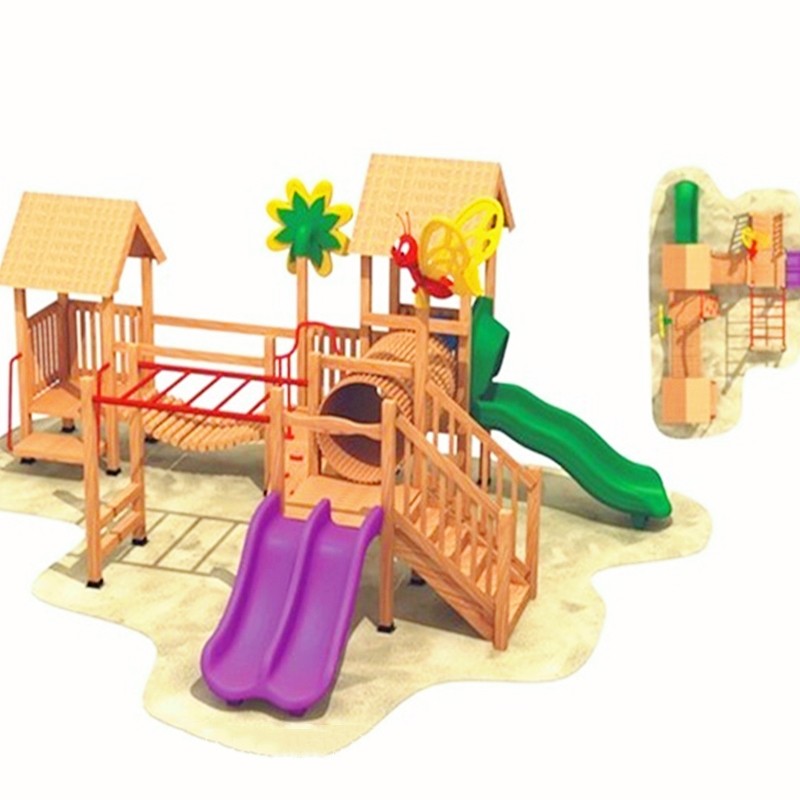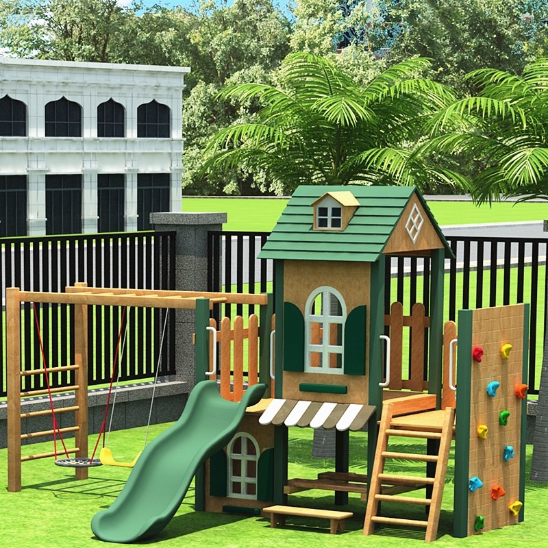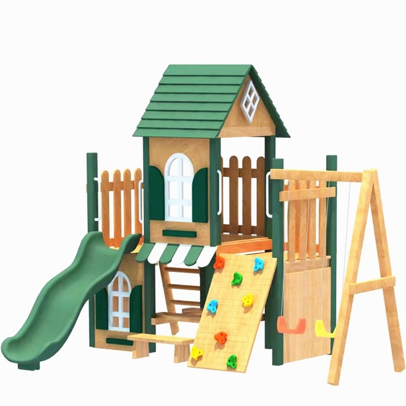 Outdoor children's wooden swing combination slide large family wooden tree house pirate ship climbing net play toy