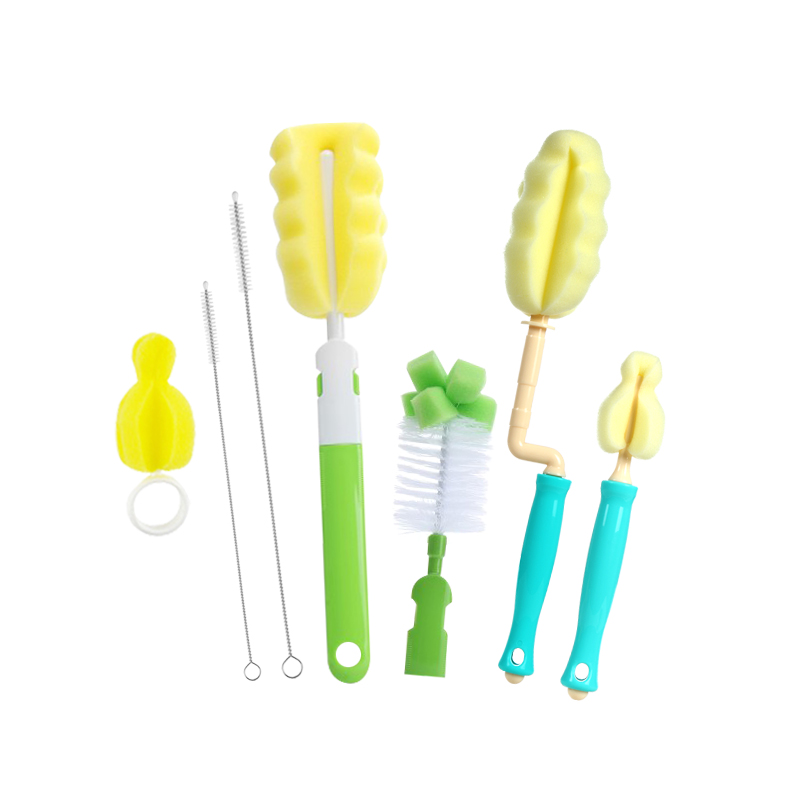 Safety bottle brushed pacifier brushed straw brushed sponge washing bottle cleaning bottle cleaning brush suit 360-degree swivel cleaning brush
