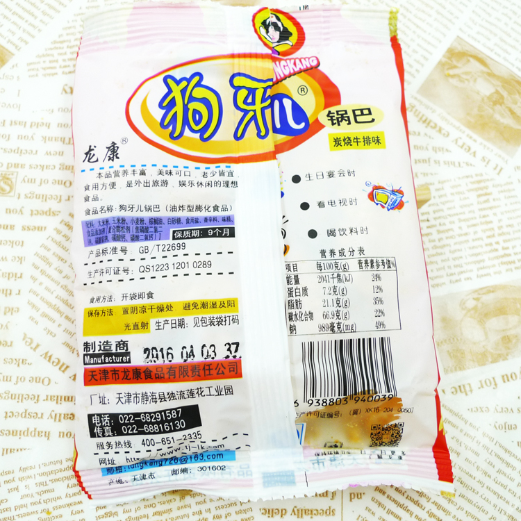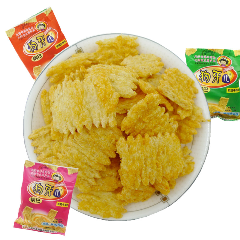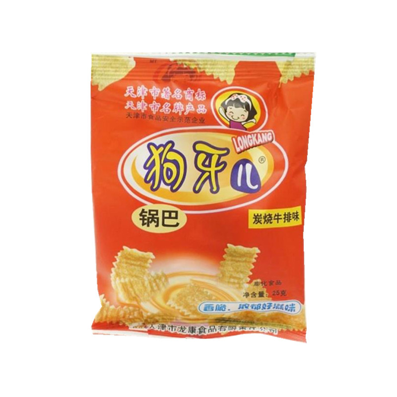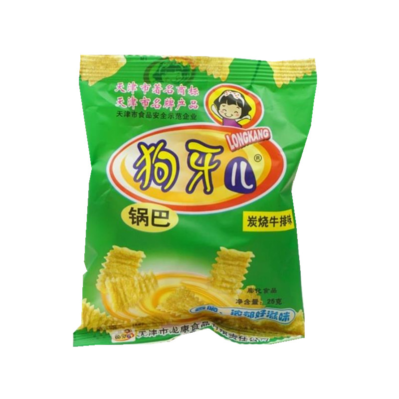 30 bags Tianjin special-born dog tooth beef steak flavor pan 80 rear child with nostalgic snacks and spicy snack puffed