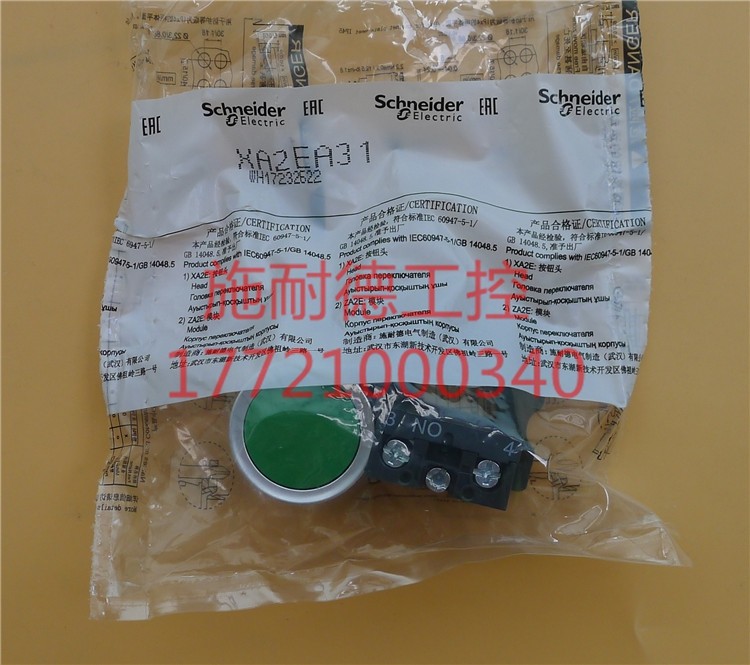 Original loaded Schneider XA2EA31 flat head reset button Green 1NO