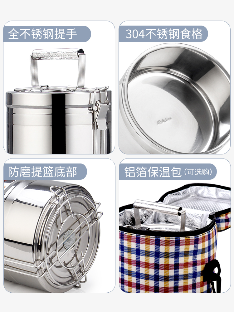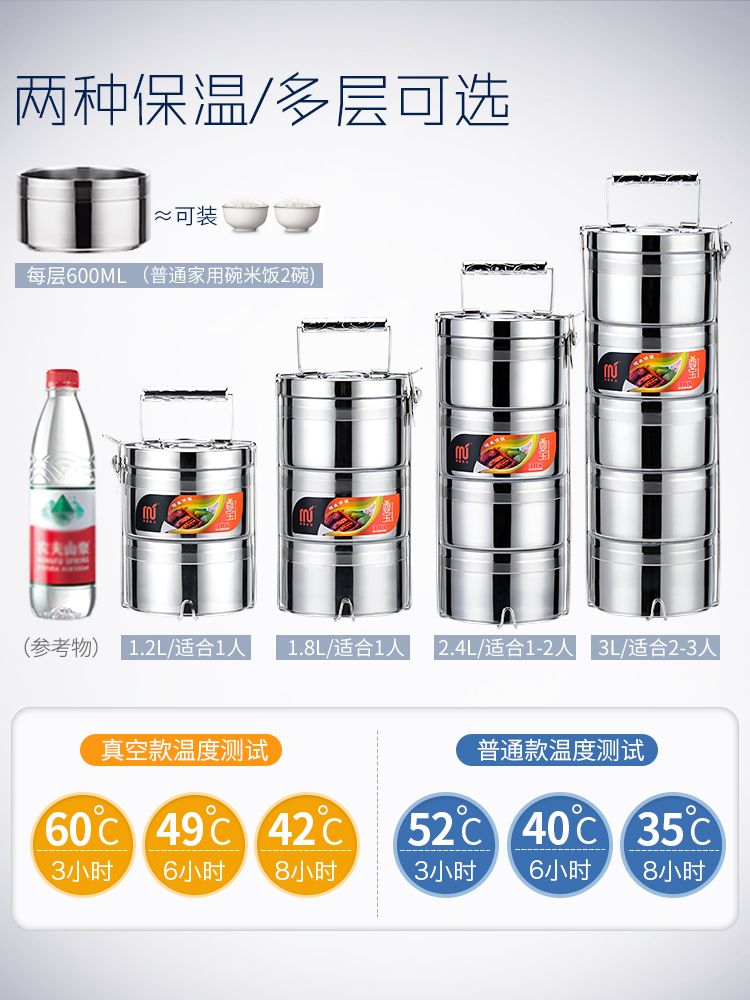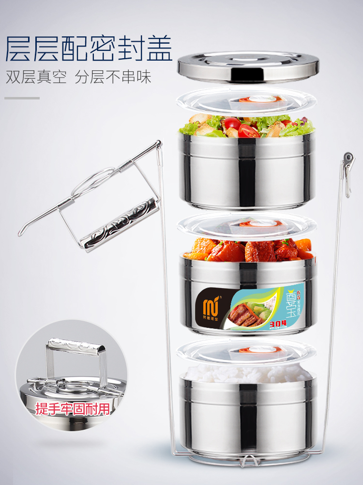 Multi-layer 304 stainless steel insulation barrel household vacuum ultra-long insulation lunch box separated portable lunch box 3 4 layers