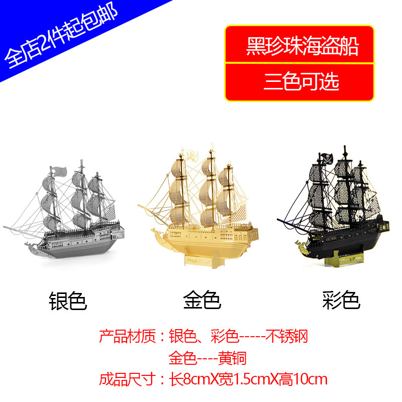 3D Glue Free Solid Metal Assembled Stainless Steel Jigsaw Model Tank Ships Artillery Caribbean Black Pearl Number