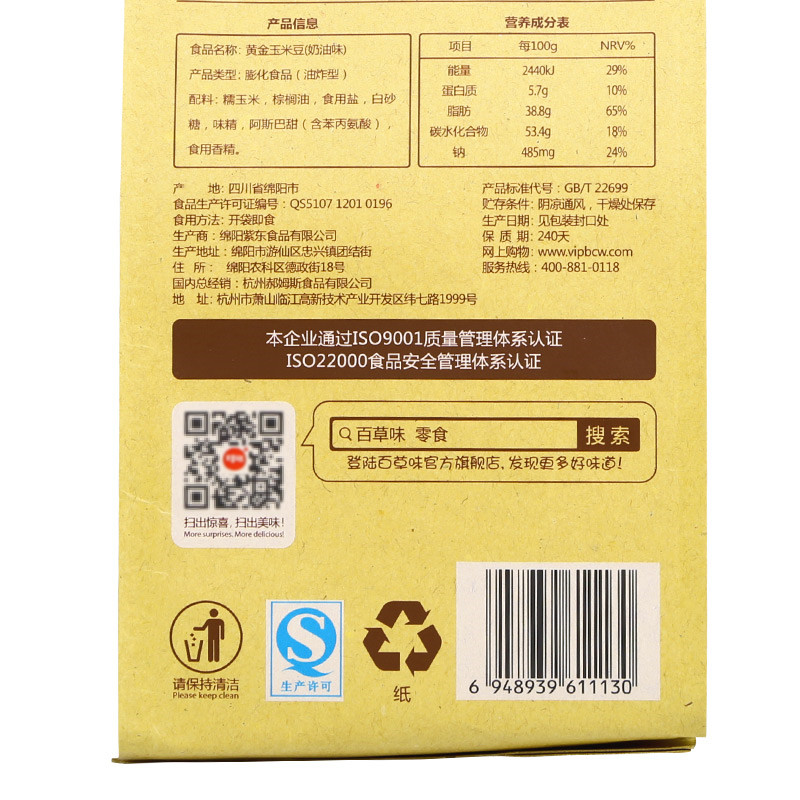 Baicao-flavored golden corn beans 130g*5 cream-flavored egg flower corn popcorn microwave net red snack spree