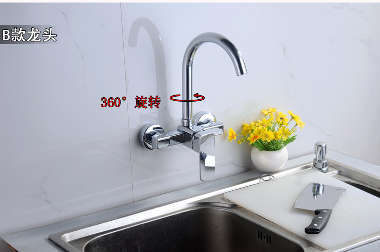 Full copper balcony laundry pool sink wash basin tap into wall type hot and cold tap kitchen tap