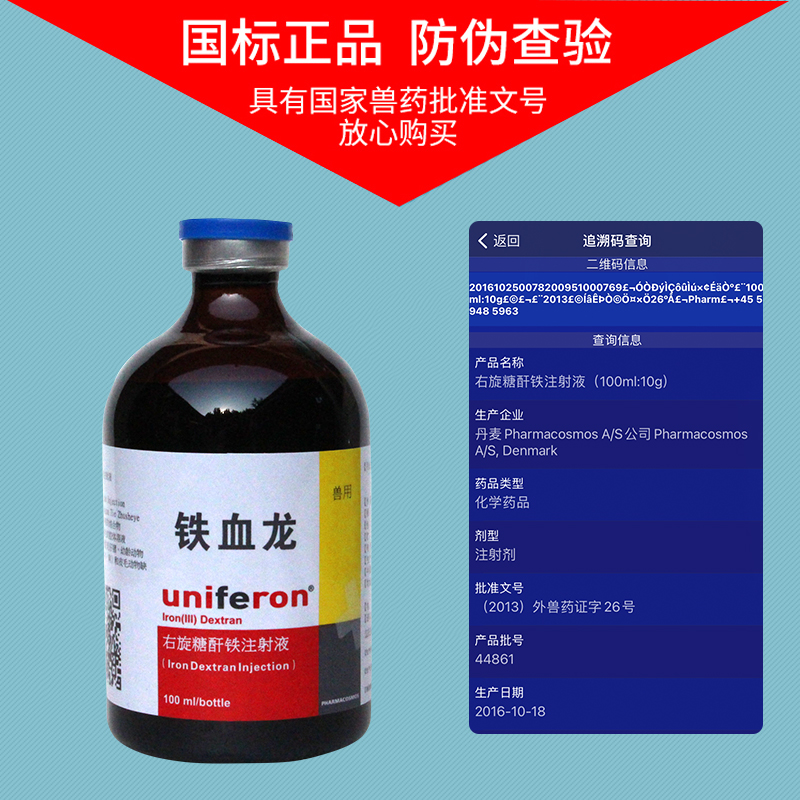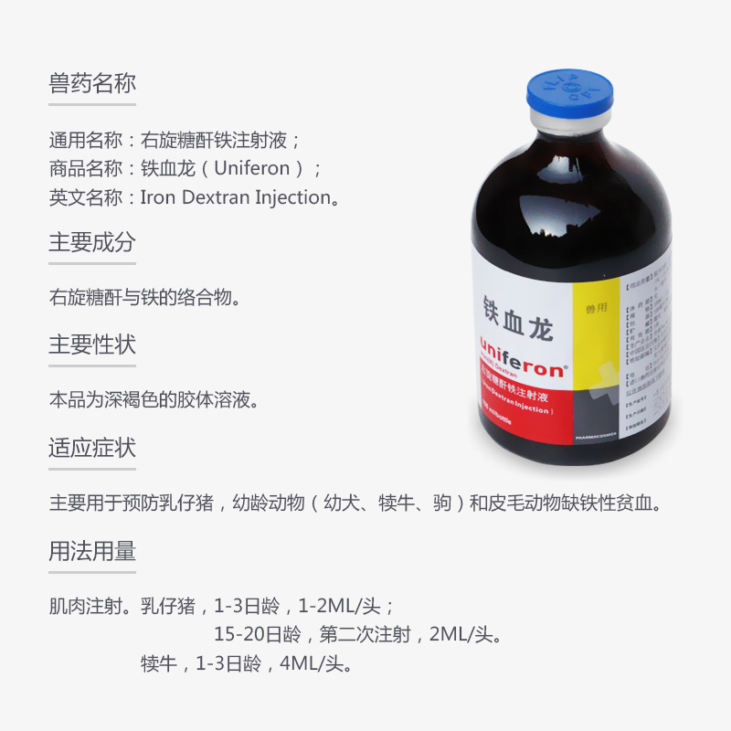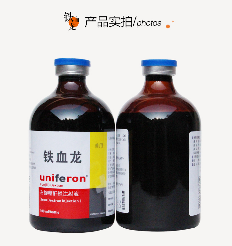 Veterinary medicine iron blood dragon animal blood element 10% dextran iron 100ML bottle piglet iron blood supplement imported from Denmark