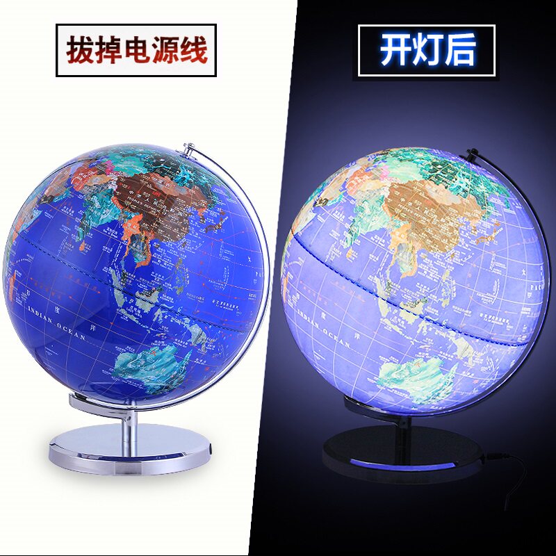 Globe 32cm HD student office study living room ornaments luminous teaching large led table lamp