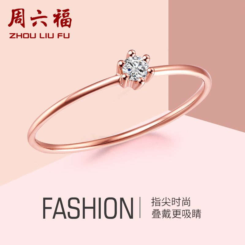 Saturday Foo 18k gold diamond ring female H rose gold six paws with a single drill tail and a luxurious and sparkling gift diamond ring