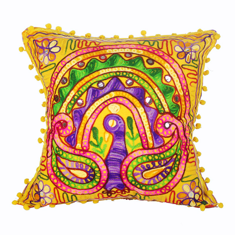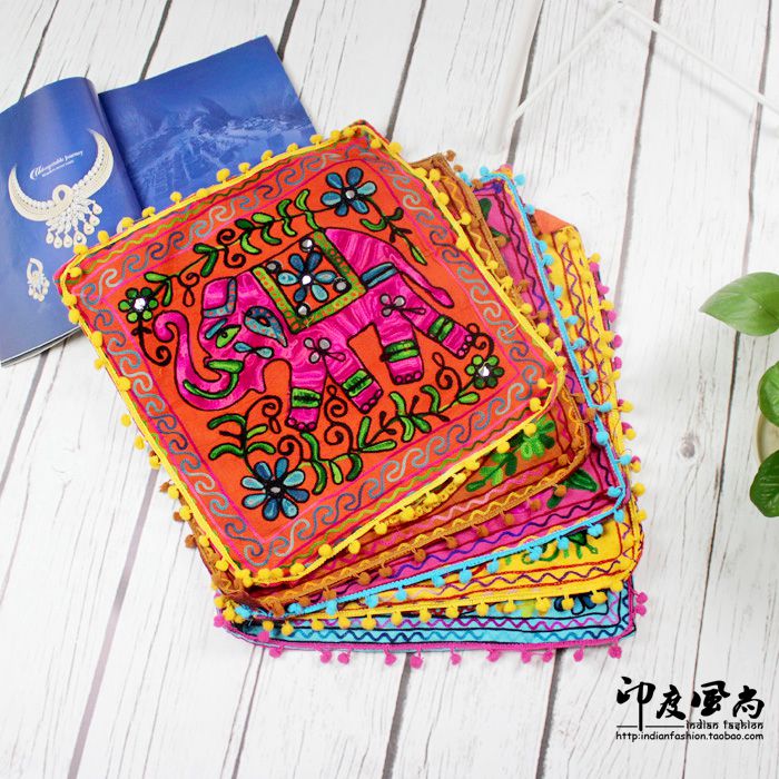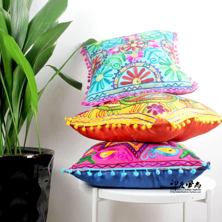 Indian wind import back cushion cover Pillow Cover Sofa Cushion Headboard Leaning Against Waist Pillowcase Cotton Cloth Embroidered Ears National Wind