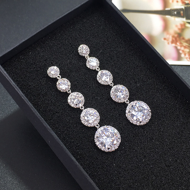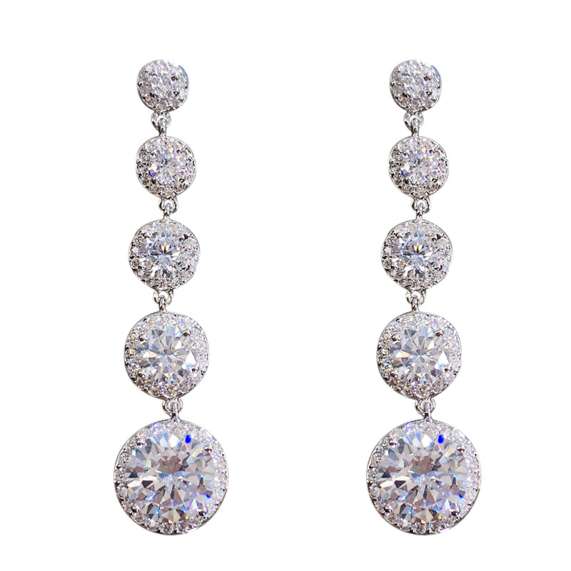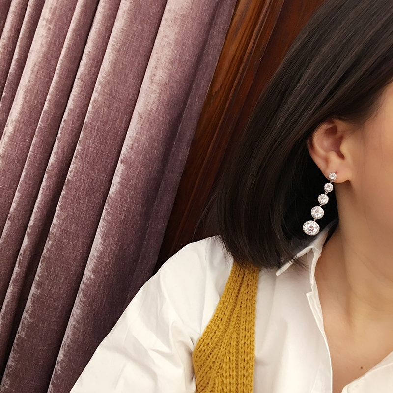 Shining zircon long version drop earrings women's simple and versatile temperament elegant silver needle ear needle fashion earrings accessories earrings