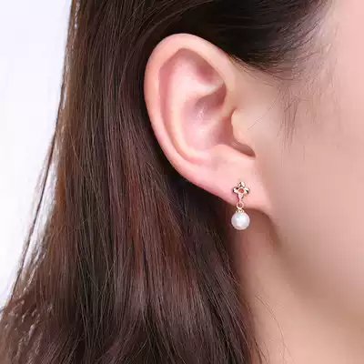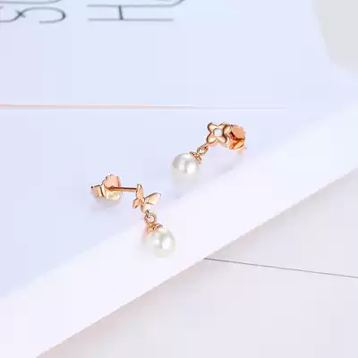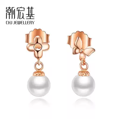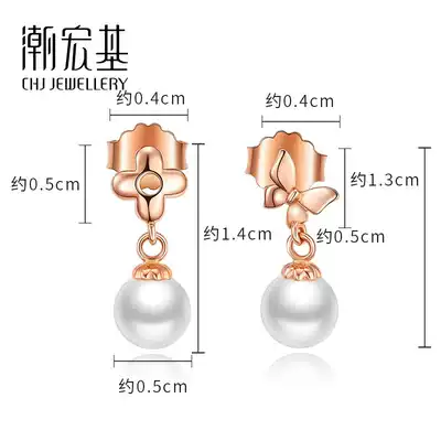 Chaohongji butterfly dance red 18k gold pearl earrings rose gold women's color gold asymmetrical earrings