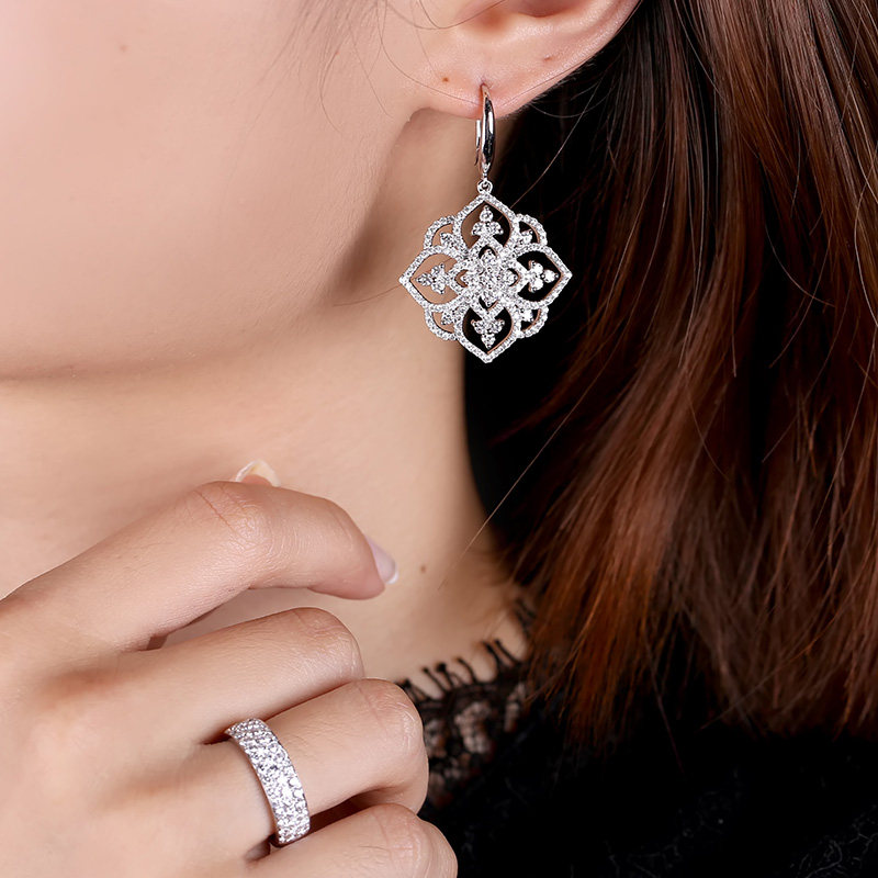 Zhongtan famous watch diamond garden ear needle female counter diamond group full of diamonds 18K fashion earrings marriage proposal