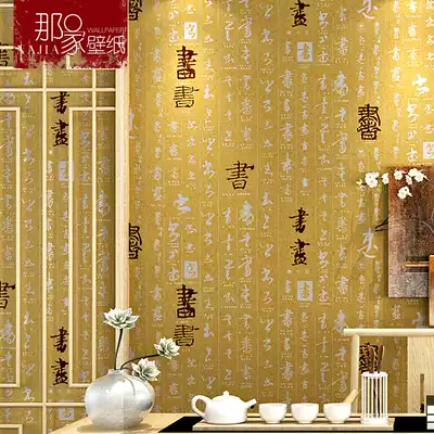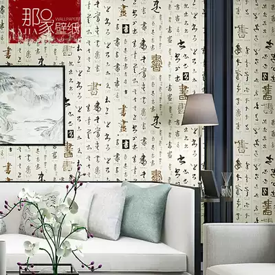 New Chinese Chinese retro style classical Zen wallpaper calligraphy calligraphy and painting background dining room box hotel wallpaper