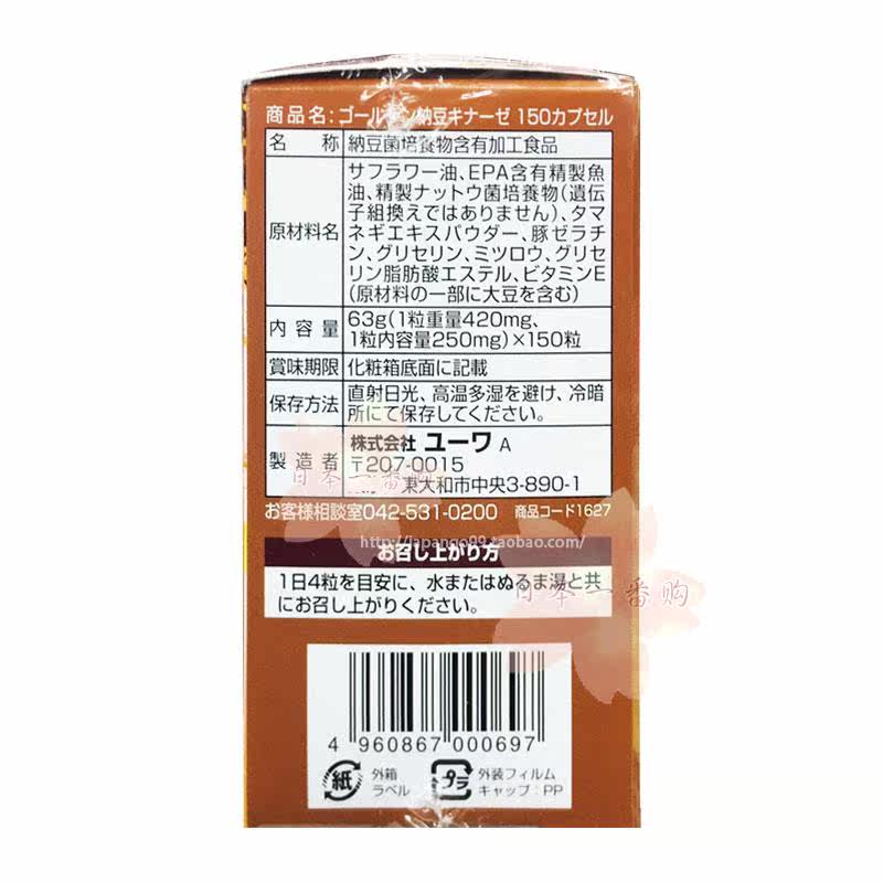 Japan direct mail YUWA naturokinase capsule EX 150 grain bag tax