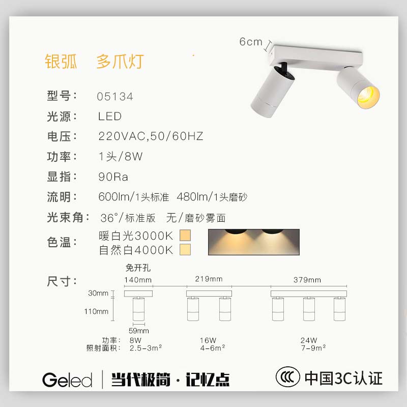 White triple head 24W 3000K black double head 16W 3000K black double head 16W 4000K black triple head 24W 30