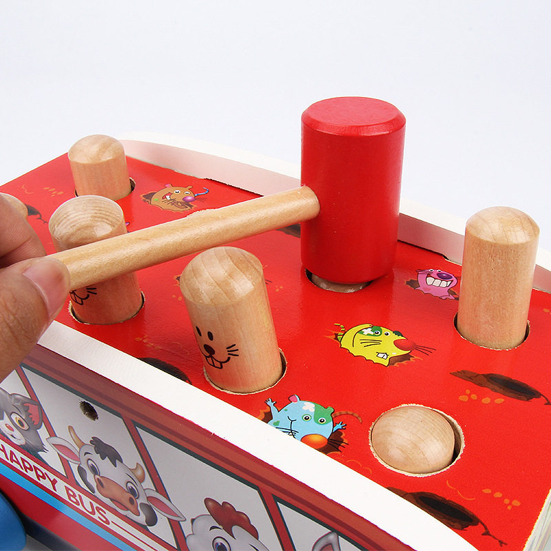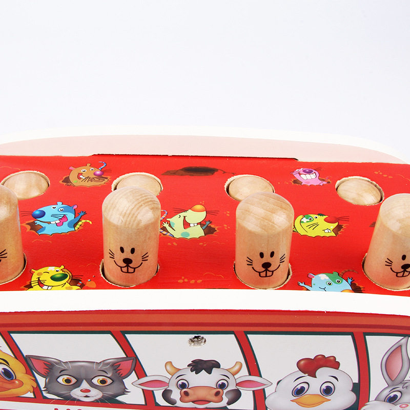 Wooden mother infant educational wooden whack-a-mole bus toy children wooden banging toy toddler toys 1-